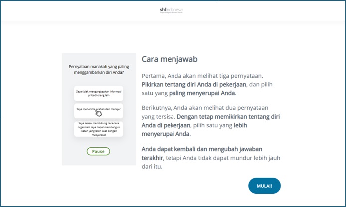 - Harap tidak menutup halaman tes saat sesi sedang berlangsung. Penggunaan kamar kecil, bisa dilakukan pada saat jedah antara 1 tes ke tes lainnya.