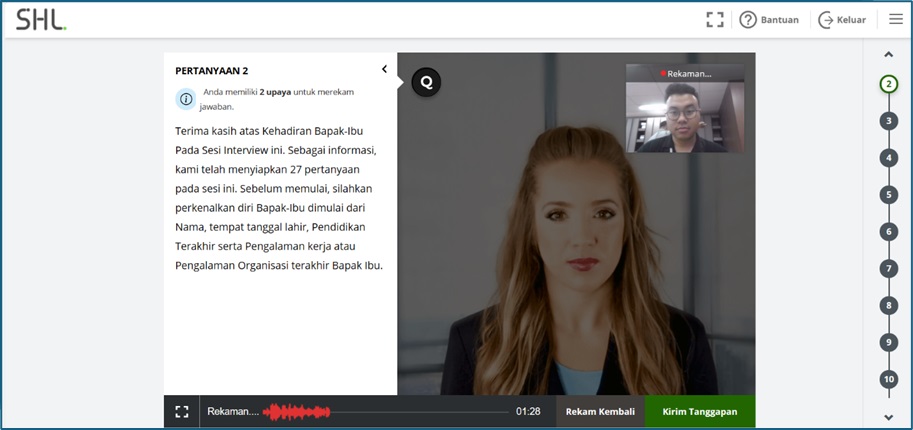 e. Klik tombol Rekam Kembali, jika merasa jawaban pada rekaman pertama kurang memuaskan, Anda memiliki 1 kesempatan untuk merekam kembali jawaban. Perhatikan petunjuk pada sistem dengan saksama.