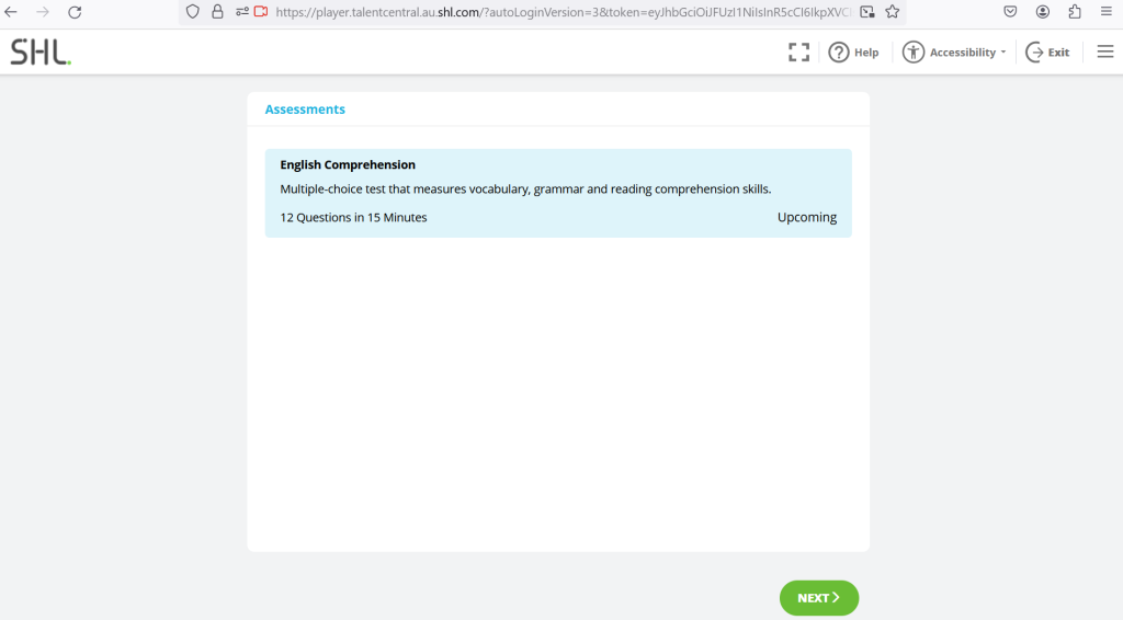Anda diminta untuk menyelesaikan 12 item pertanyaan yang mencakup pemahaman mengenai (vocabulary, grammar, dan kemampuan reading comprehension). Harap perhatikan dengan saksama! Mayoritas peserta akan menyelesaikan penilaian dalam waktu kurang lebih 15 Menit.